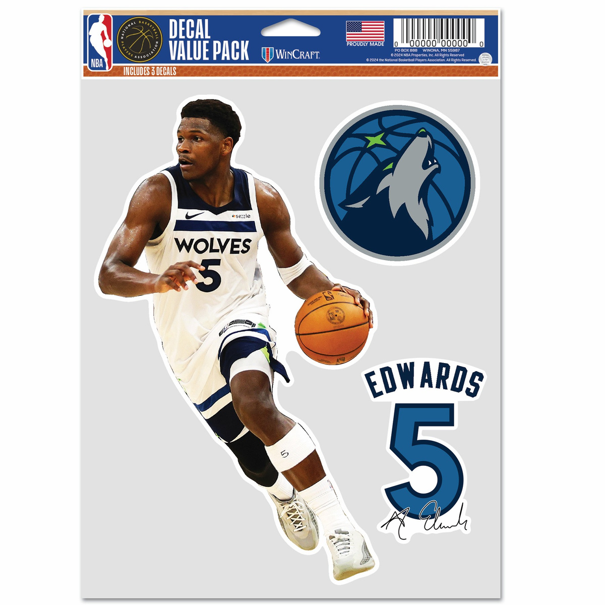 WinCraft NBA Multi Use 3 Fan Pack Decal Anthony Edwards Minnesota Timberwolves