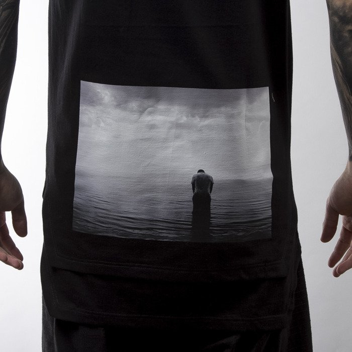 Koszulka "na ramiona" od Majors. Przedłużany podszyciem tank top z charakterystycznymi wycięciami na bokach. Dół wykończony w formie rombu. Na plecach nadruk w postaci dużej fotografiki. Wewnątrz brendowa wszywka Majors.