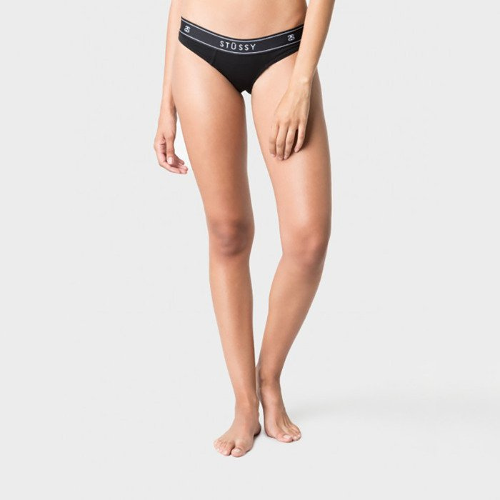 Damskie figi od amerykańskiej marki Stussy. Wykonane z dobrej jakościowo bawełny. Elastyczna szeroka gumka z brendowym napisem Stussy.