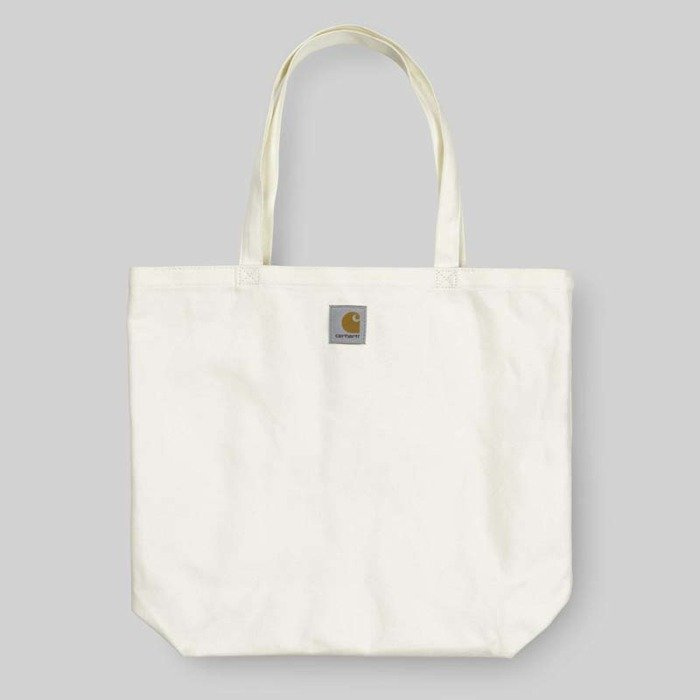 Pojemna torba marki Carhartt'a WIP. Wykonana z grubego, wytrzymałego płótna i przeszyta mocnym ściegiem wytrzyma przenoszenie nawet sporych wagowo pakunków. Wygodne uchwyt do przenoszenia w ręku lub przewieszenia przez ramię. Jeden z boków ozdobiony czarnym nadrukiem. Brendowa aplikacja Carhartt WIP w formie naszywki.