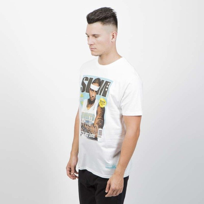 T-shirt marki Mitchell & Ness z linii Slam Cover Tee w białym kolorze. Koszulka z graczem drużyny Denver Nuggets - Carmelo Anthonym na przodzie. U dołu nadrukowana aplikacja z logotypem marki.